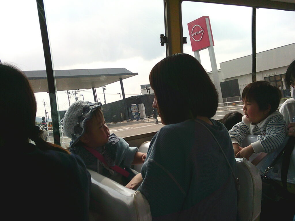 今日は7組の親子さんと一緒に園バスに乗って